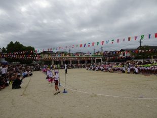 今年は9月に入っても猛暑日が続き思うように運動会の練習が出来ませんでした。戸外でしか出来ないことを短時間で行い室内で出来ることは室内で練習しました。9月下旬になりようやく戸外で練習が出来るようになりました。直前の週は連日雨に悩まされ第二リハーサル後、思うような練習が出来ませんでしたが雨間をみつけ当日に向けて頑張ってきた子ども達。