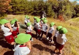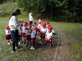 前日までの雨で芝生は少し湿っていましたが、穏やかなお天気の中、秋の遠足を楽しんできました。現地に着くと「お腹すいた。お弁当まだ?!」と言いながら、ゲーム・山登り・ドングリ拾いを楽しみました。友達や担任とのつながりも一段と深まったひと時でした。