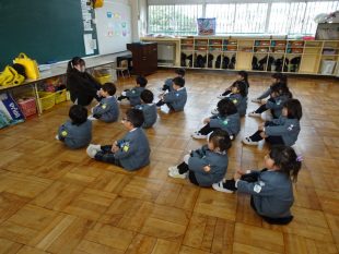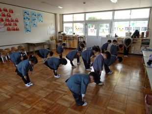 園長先生から「うがい手洗いをしっかりとして、風をひかないようにしましょう。元気に外遊びをして、寒さに負けない丈夫な体を作りましょう」と話がありました。