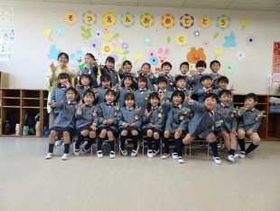 お名前を呼ばれたら大きな声で返事をし、旅立ちのうたもとてもきれいな声で歌うことができました。