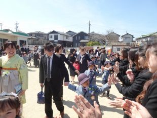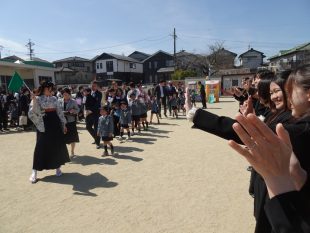 お別れ会のあとは運動場に整列し、全員の先生たちが花道を作り子ども達を送り出しました。
