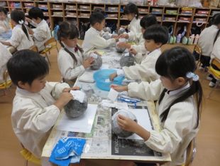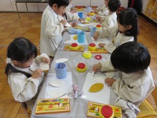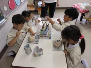 年長組 土粘土絵付け