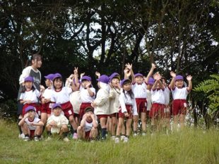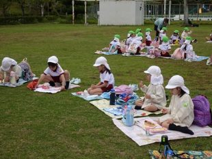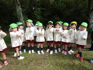 朝、雨がぱらっと降り気をもみましたが、その後はお天気に恵まれて秋の自然を満喫してきました。クラス対抗でゲームをし、クラスごとに山に登ったりドングリを探しました。お待ちかねのお弁当もモリモリ食べていた年中さん。楽しい1日を過ごすことが出来ました。