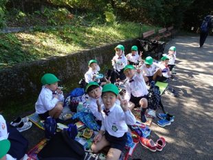 お待ちかねのお弁当タイム。「いただきます」と同時にパクパク食べていました。午後からも色々な動物を見て、おやつタイム!おやつ後、帰路についたのですが急に疲れが出てきたようで少し足取りが重くなっていましたがバスまで頑張って歩きました。